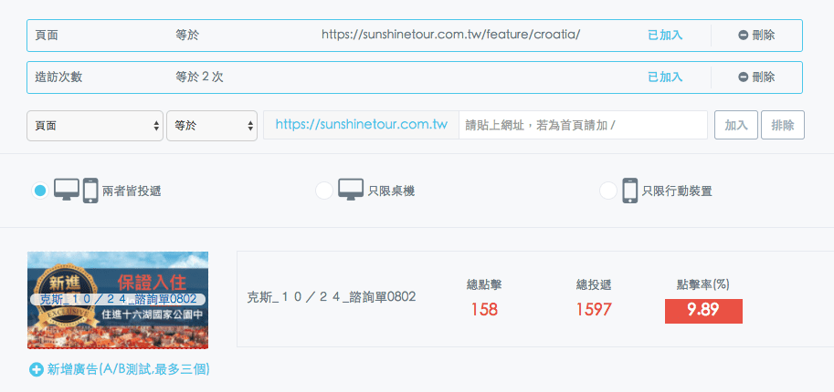 只要設立多則廣告,Kerebro 便會幫你做 A/B 測試,幫你根據訪客的實際點擊率等數據,自動優化廣告展示,以確保你的廣告能夠取得更好的點擊率,進而提升曝光與轉換!