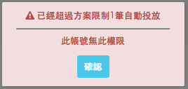 LITE版您能夠啟用的自動投遞條件限制為1筆,若想打開一筆以上,會顯示超過上限