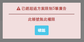 LITE版廣告新增限制為 5筆,若上傳超過5筆,會顯示超過上限