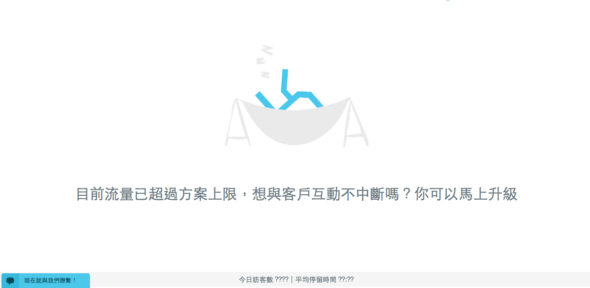 LITE版流量限制為 每月10,000人,在流量超過的情況下,Kerebro將會停止收集您的網站資料,並停止投遞站內廣告。若超過流量上限,您將會看到以下畫面