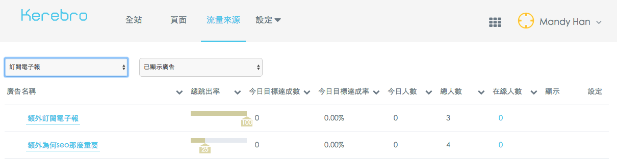 因此,如果是自然流量進站的訪客,就算完成了目標也不會記錄在Kerebro系統中喔!