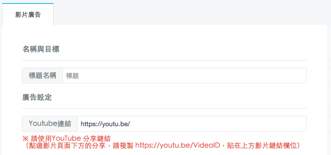 填寫標題,並貼上您想要播放的影片Youtube網址 (*請使用短網址)