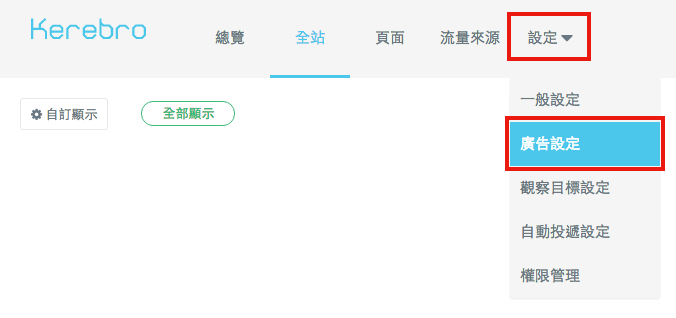 你可以在後台「設定」、「廣告設定」中新增