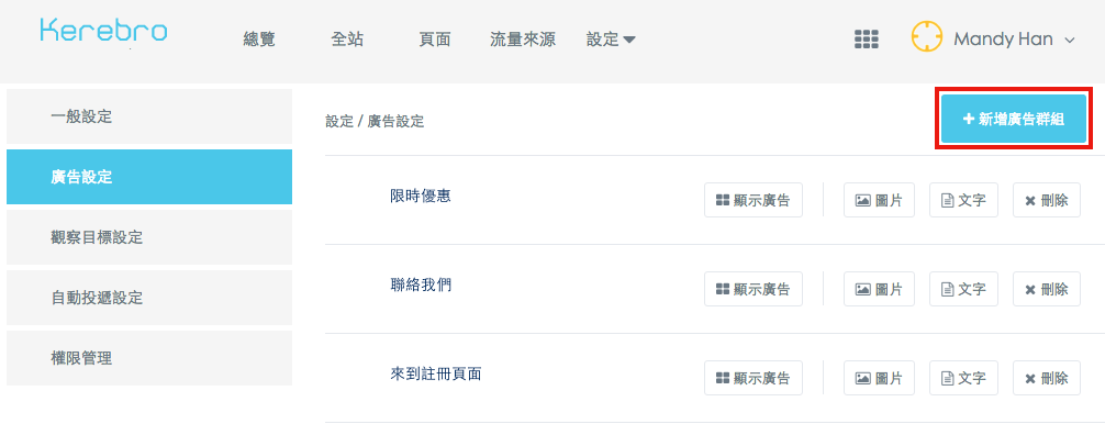 點選右上角「新增廣告群組」
