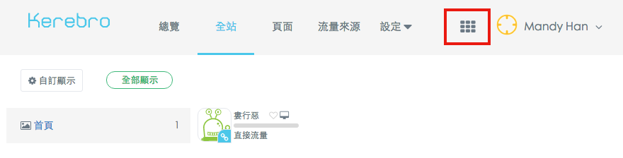 設定完成儲存後,你就可以在全站點選右上角的九宮格小方塊