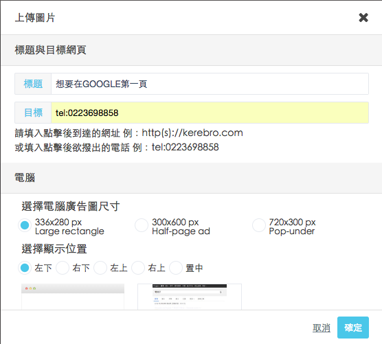*電腦版與手機版廣告尺寸不同,需分別上傳喔!
