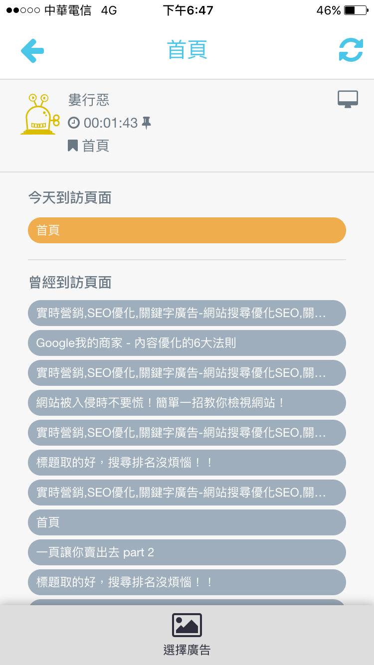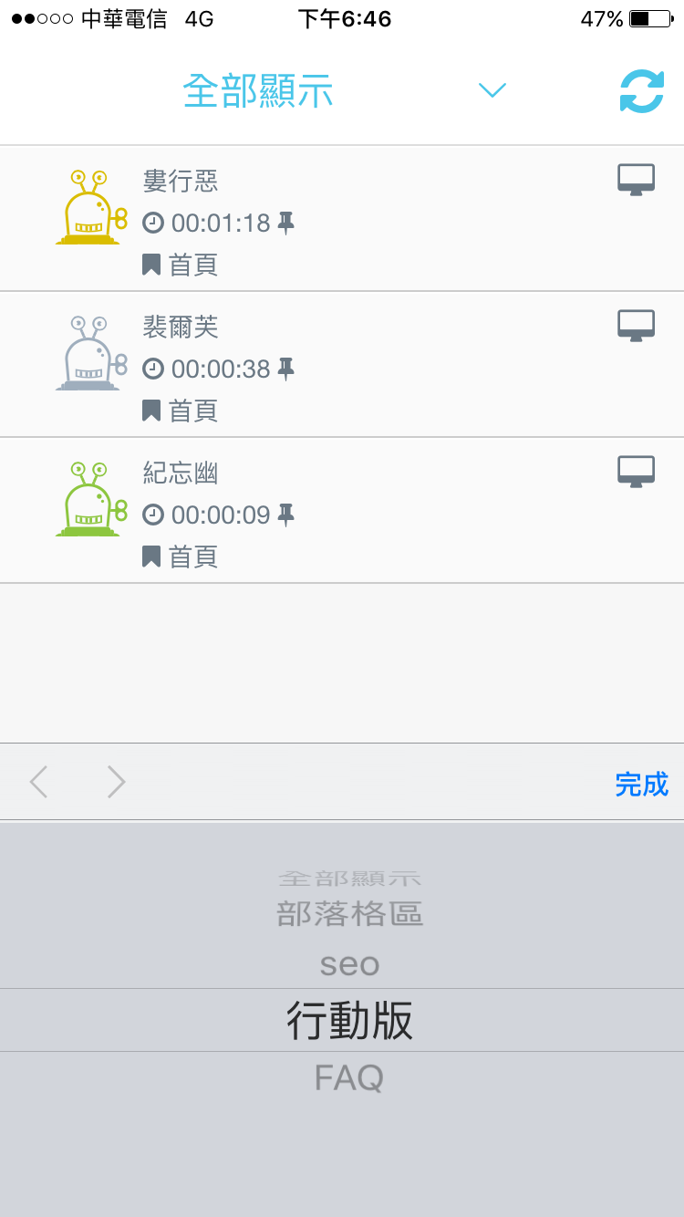 為了防止消耗太多行動上網流量,手機版目前不會即時更新,但你可以隨時點選右上角重整按鈕,就能看到最新訪客資訊