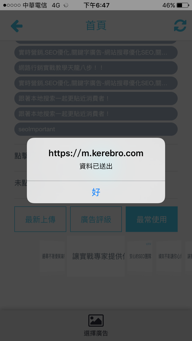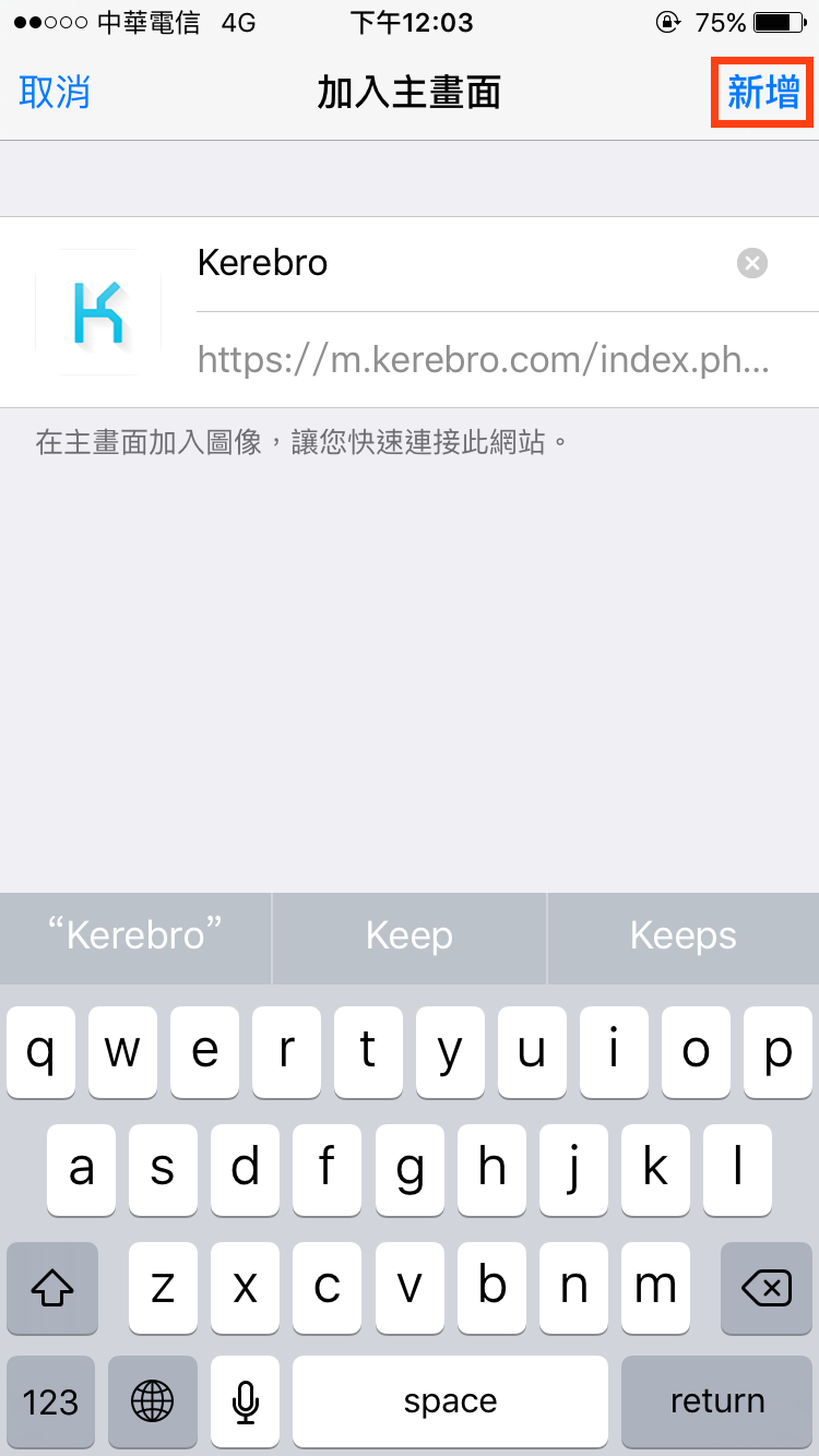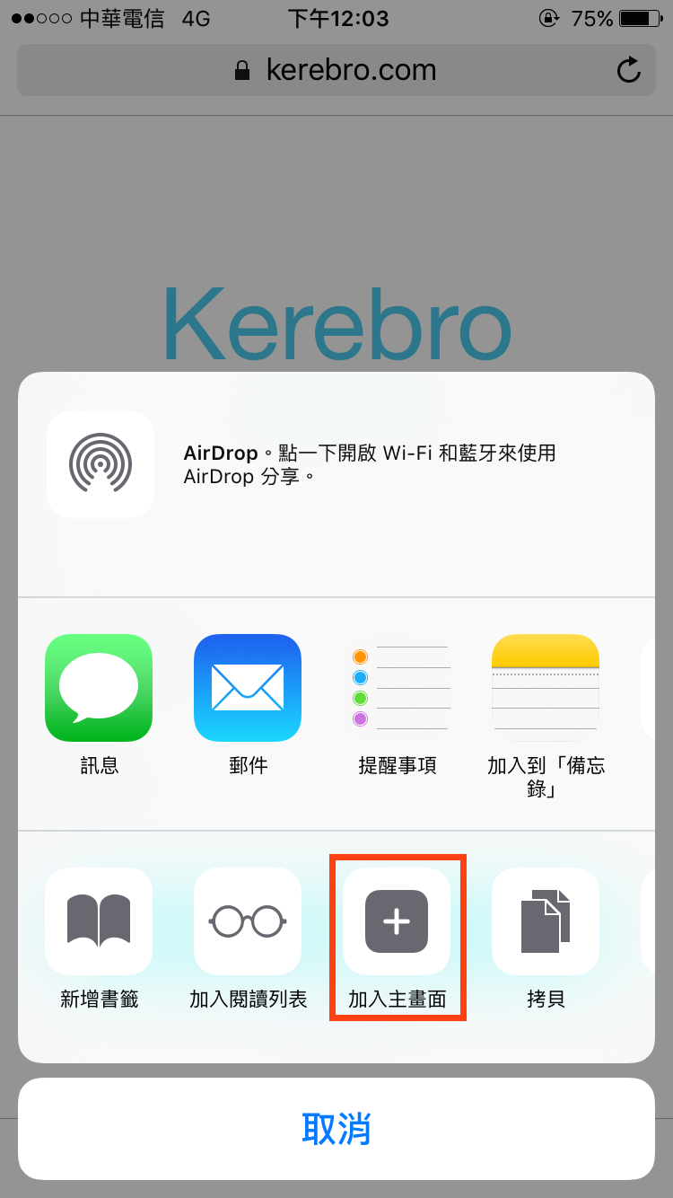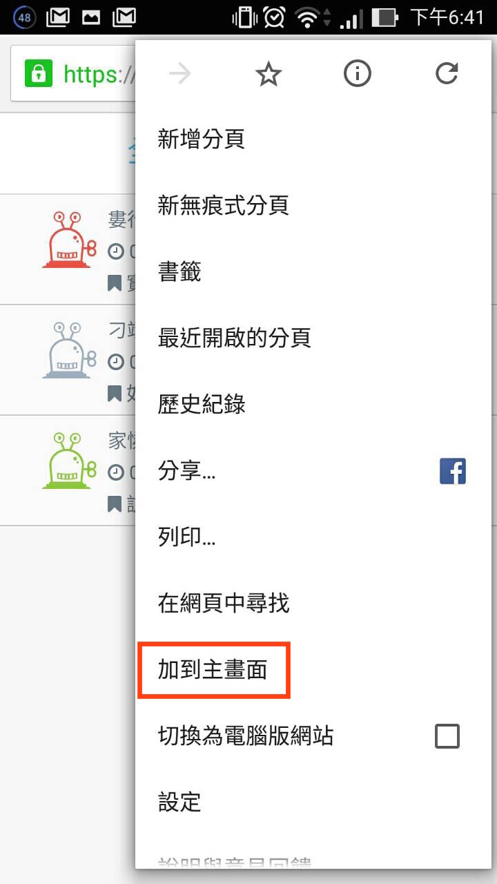 連上行動版網站後,為了之後快速瀏覽,你可以把他加入主畫面
