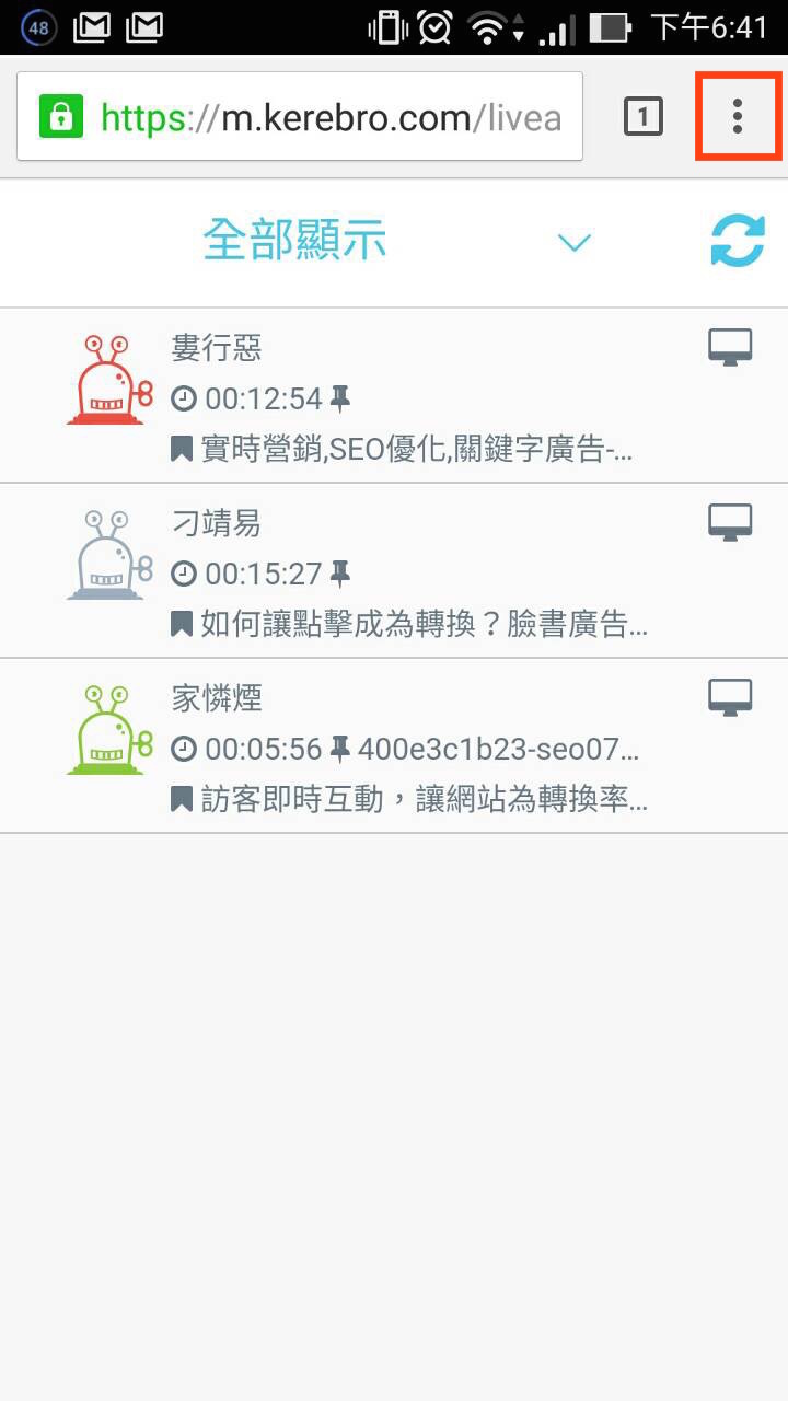 登入行動版Kerebro後,你可以看到目前在你的網站上的所有客戶!