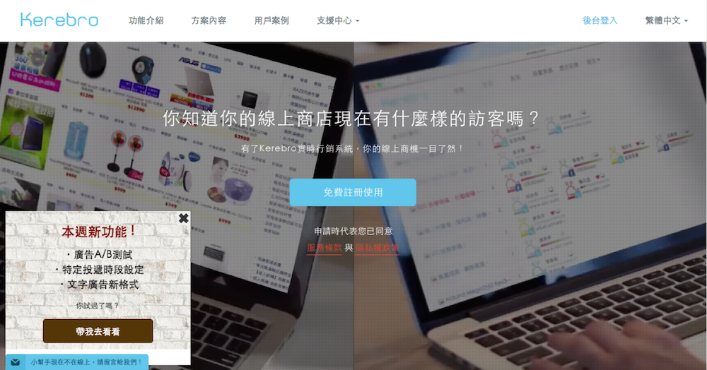 以上都是一些可以用Kerebro達成的即時互動秘笈,你也可以在網站上試試,針對新舊客戶有不同的經營喔!